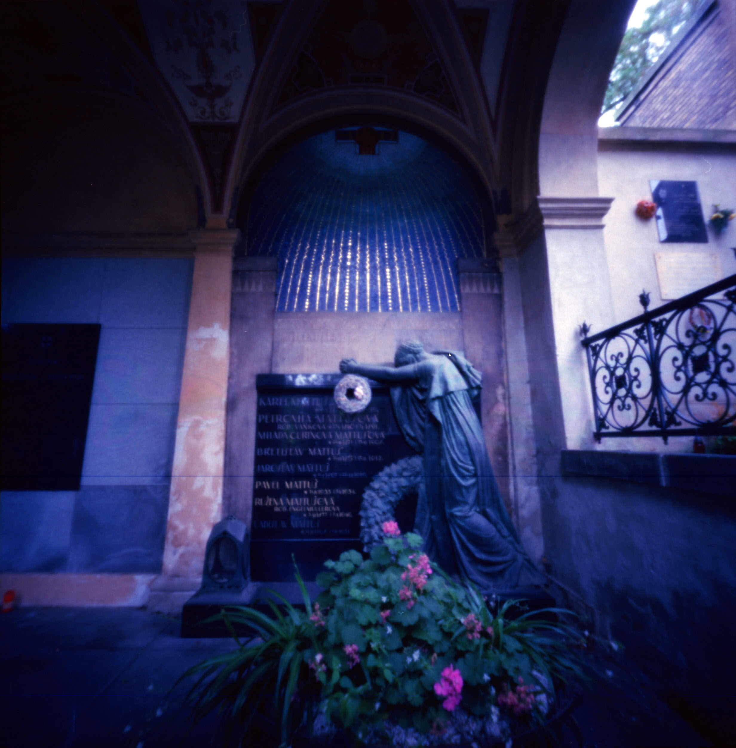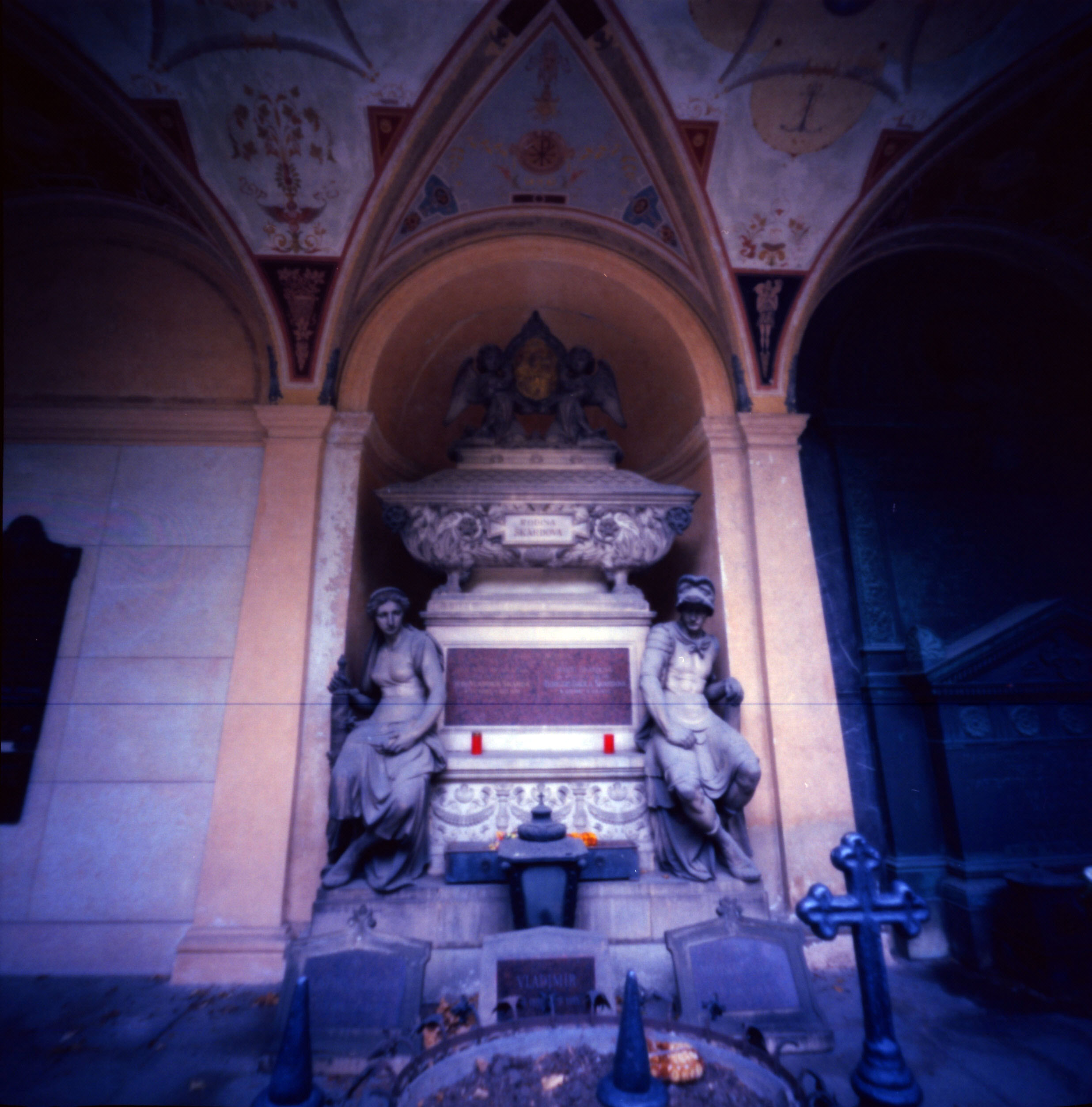 I know it sounds weird but I like to visit cemeteries, and the cemetery of Vyšehrad in Prague (Czech Republic) is one of the most beautiful cemeteries I’ve ever visited. Outside the city center, on the banks of the river Moldau is the Vyšehrad fortress. On its grounds is the cemetery. It is not very big, but quite important for the recent history of Prague. The reason? The Slavin, a memorial for a lot of important Czechs who died at the end of the 19th and beginning of the 20th century. Buried there for instance are artist Alfons Mucha, writer Jan Neruda and composer Antonín Dvořák. Many gravestones are works of art in Art Nouveau style, with beautiful tiling and large statues. There are many family graves placed against the walls surrounding the cemetery.