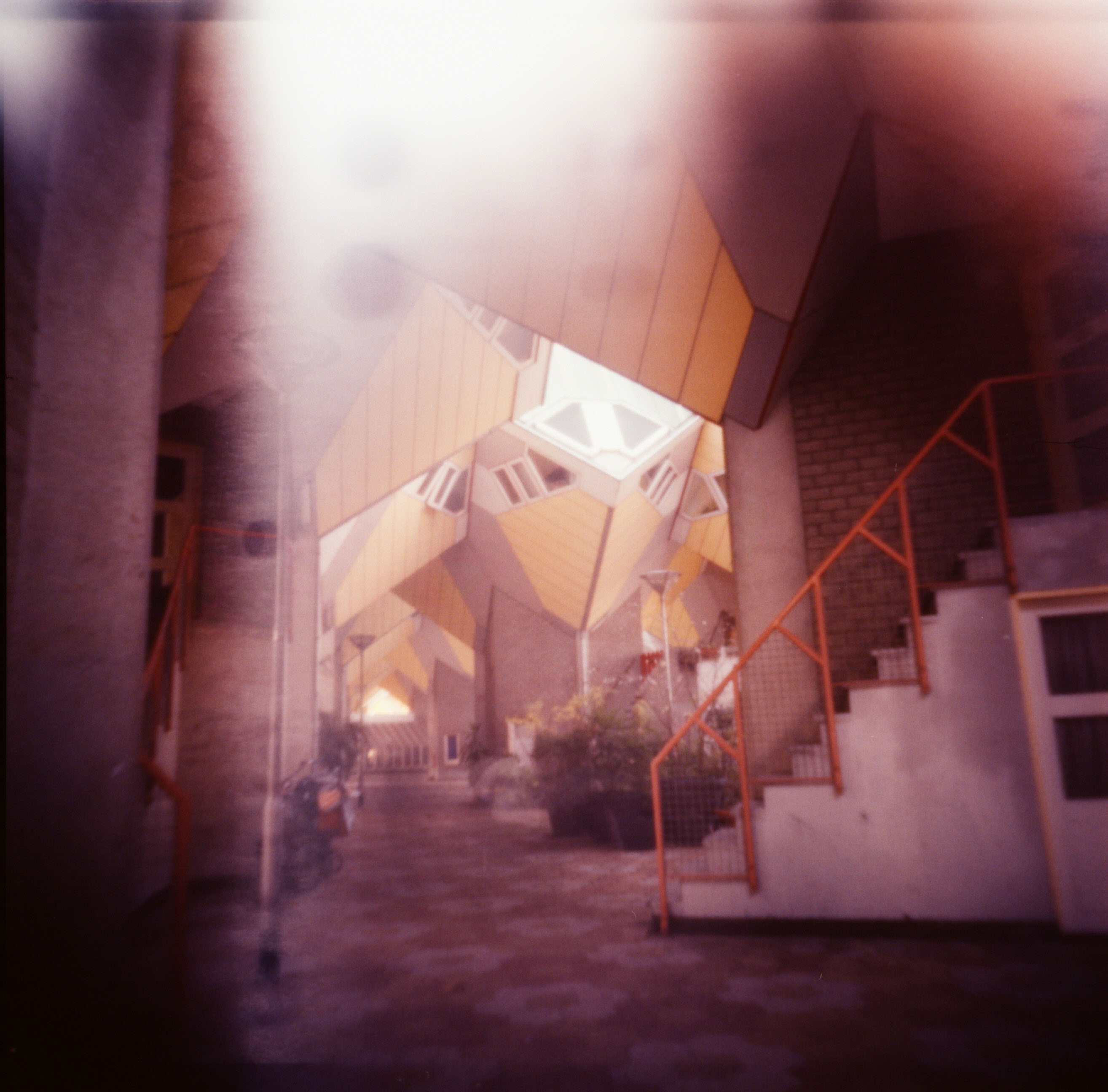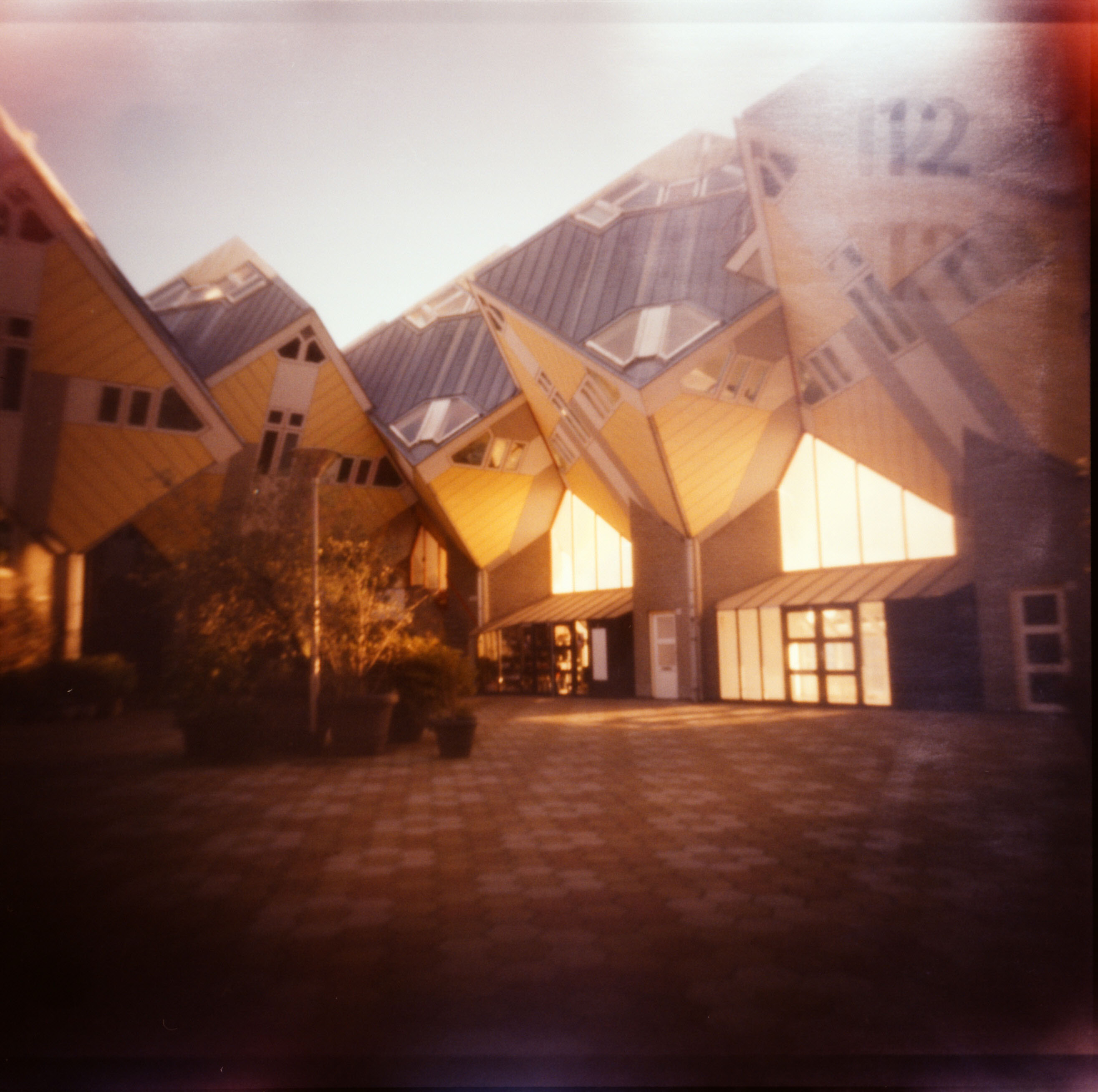 Both my birth place Helmond and my current hometown Rotterdam have an urban forest, also known as the cube houses. They were designed by architect Piet Blom. His idea was that people should live in houses built on poles. so that the rest of the space (on the floor) could be used by anyone as open space. The first houses were built in Helmond in 1974 and 1975, in a bunch of three houses. After that, Blom built a forest in Helmond, consisting of 18 cube houses, and 37 cubes that together form a theater called Het Speelhuis (The Playhouse). Unfortunately Het Speelhuis burned down to the ground in december 2011. It will not be rebuilt. The houses survived the fire.