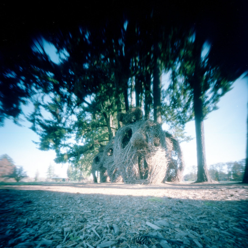 A few years ago, the artist Patrick Dougherty constructed a curious stick-work sculpture at Orenco Woods, a local park and playground in Hillsboro, Oregon (a suburb of Portland). According to the locals, it was both shocking and delightful to come upon them, suddenly, one day in the spring of 2017. Apparently, Dougherty builds 10 stick-work sculptures a year in parks in the United States. You can read more about the artist and the sculptures here at Travel Oregon and here at Willamette Week.